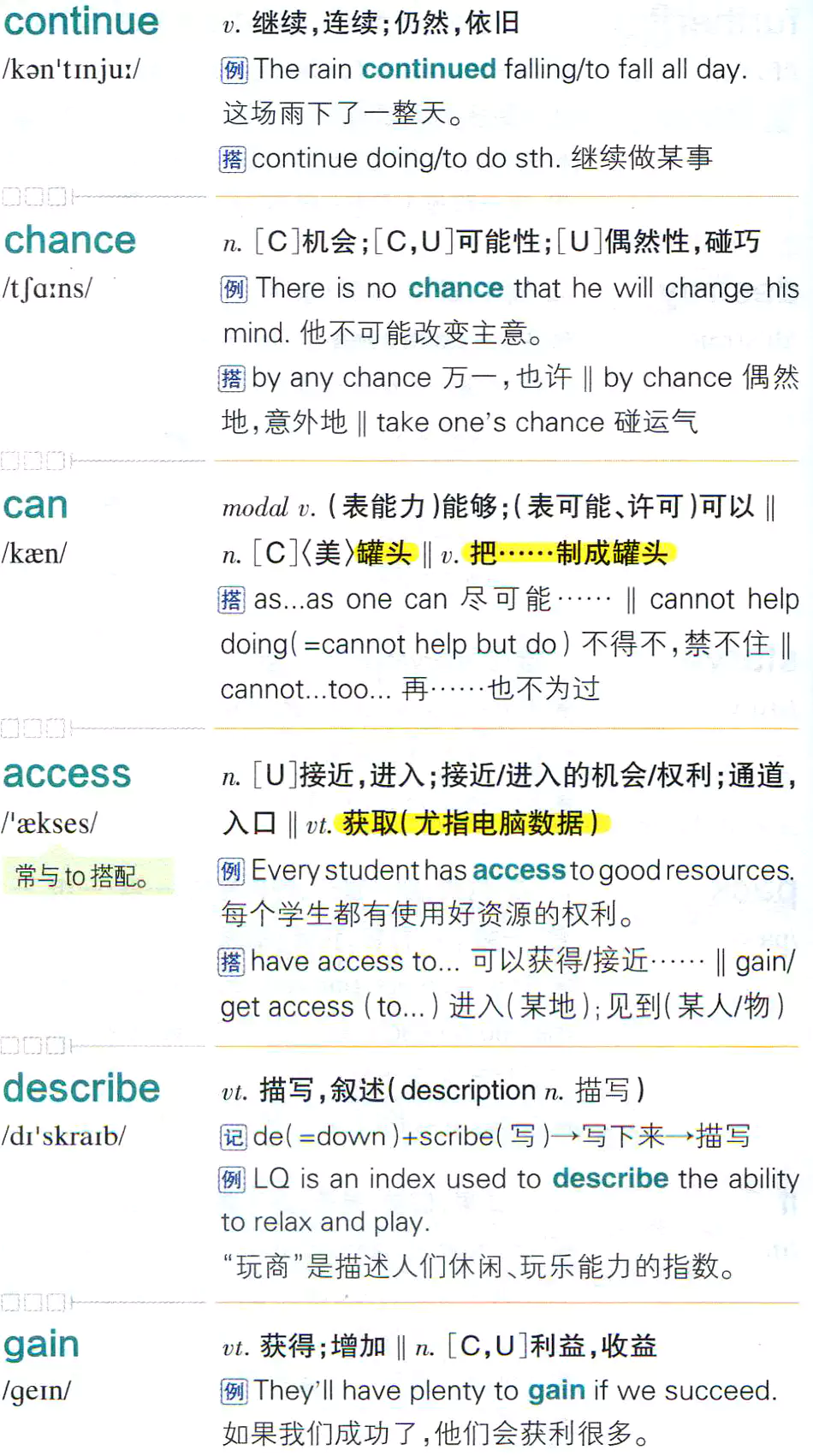 【第76页】continue,chance,can,access,describe,gain