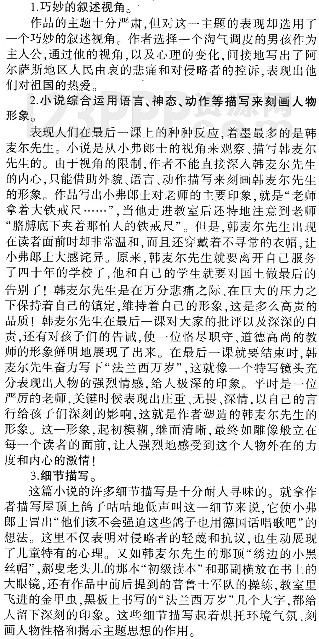 初中语文七年级下册同步教材全解 6:《最后一课》