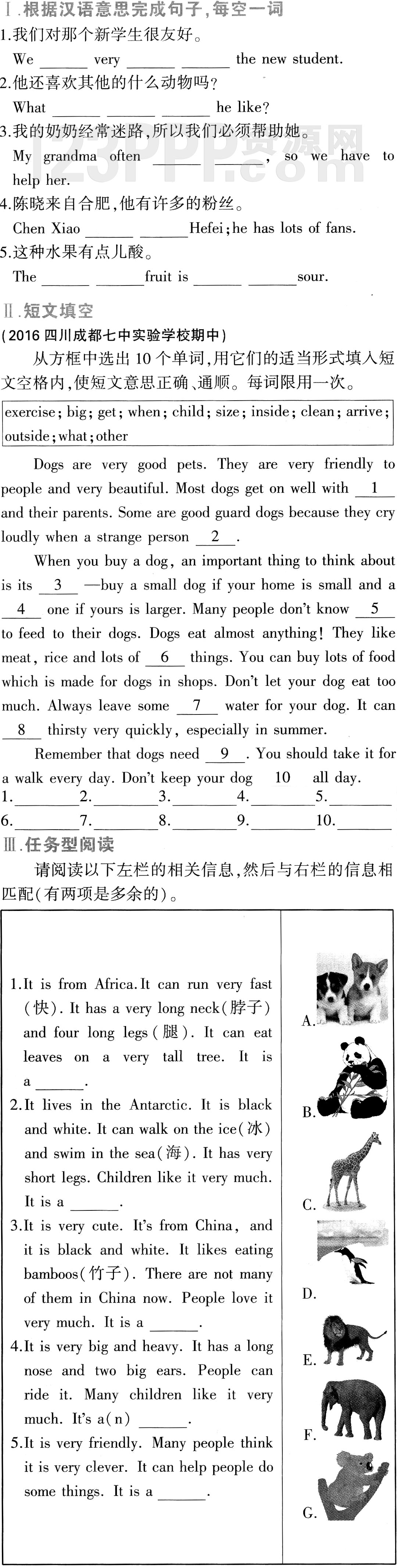 初一英语(人教版)七年级下册Unit 5 全练试题