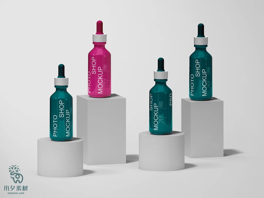 化妆品护肤品精华玻璃滴管瓶包装VI展示效果智能贴图样机PSD素材 3个PSD文件