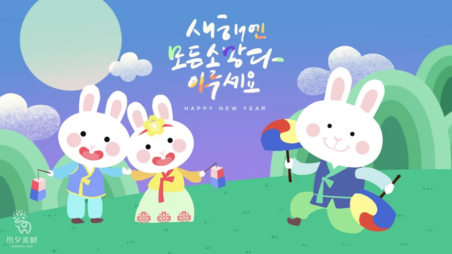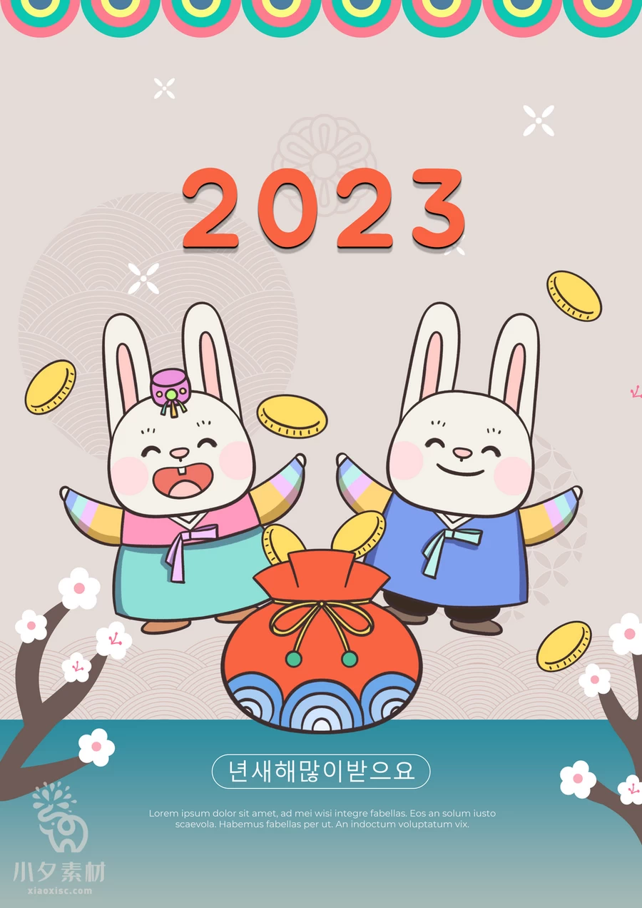 2023年兔年大吉新年快乐卡通插画节日宣传海报展板PSD设计素材 61个PSD文件