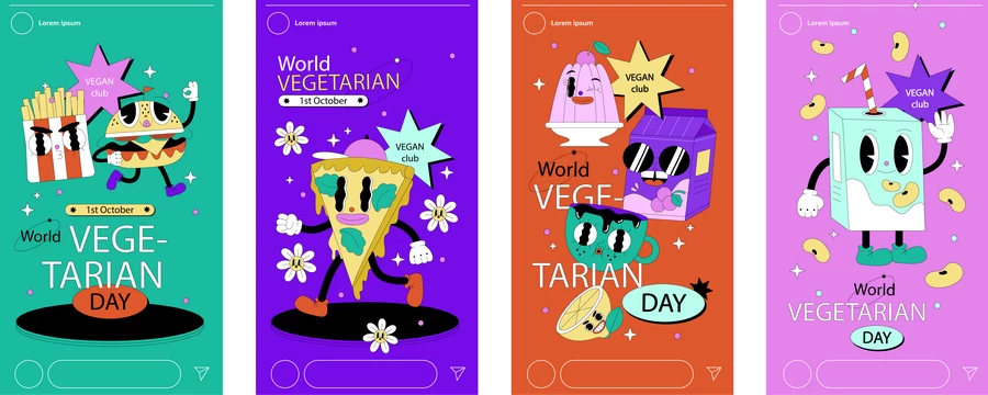 复古潮流趣味创意卡通水果蔬菜食品元素插画海报AI矢量设计素材 10个AI文件