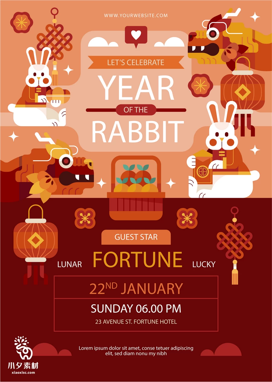 2023兔年新年恭贺新春喜庆元素插画海报banner模板AI矢量设计素材 14个AI设计素材