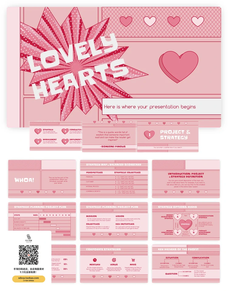 高级创意卡通趣味孟菲斯潮流渐变撞色线框课件PPT模板设计素材 15个PPTX设计模板