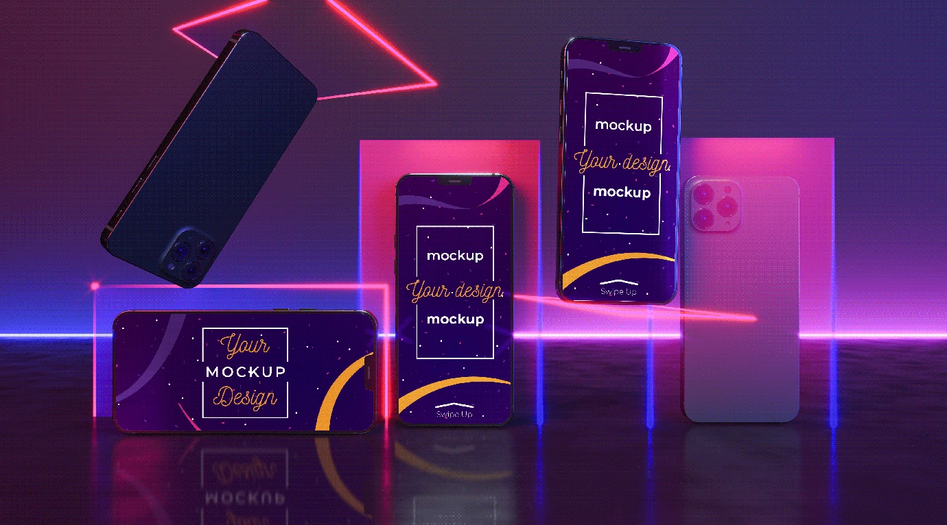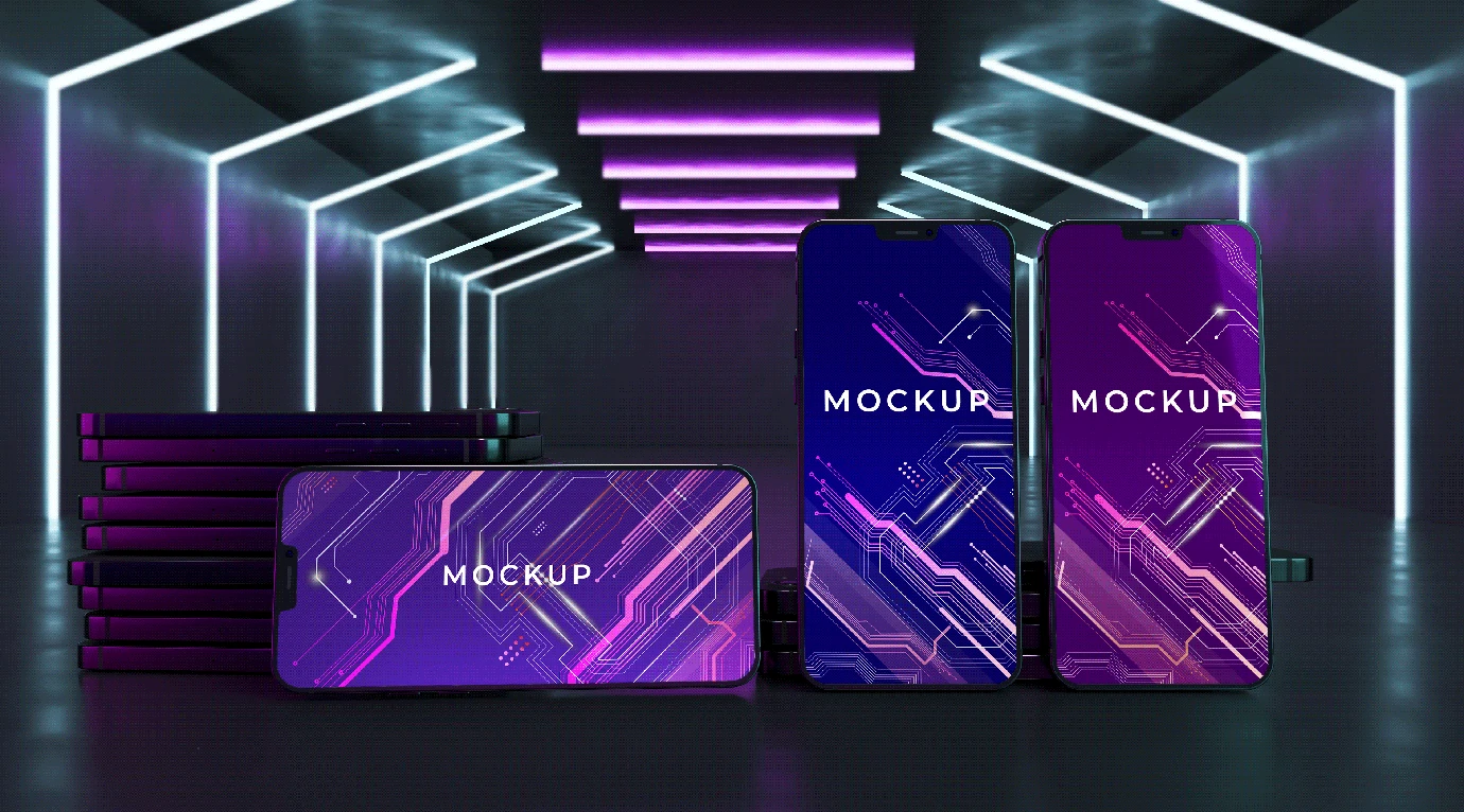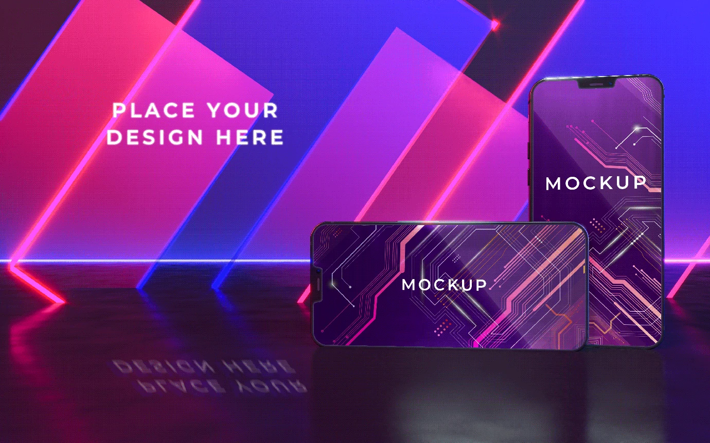 潮流科技赛博朋克手机UI界面VI展示效果智能贴图样机PSD设计素材 21个PSD设计文件
