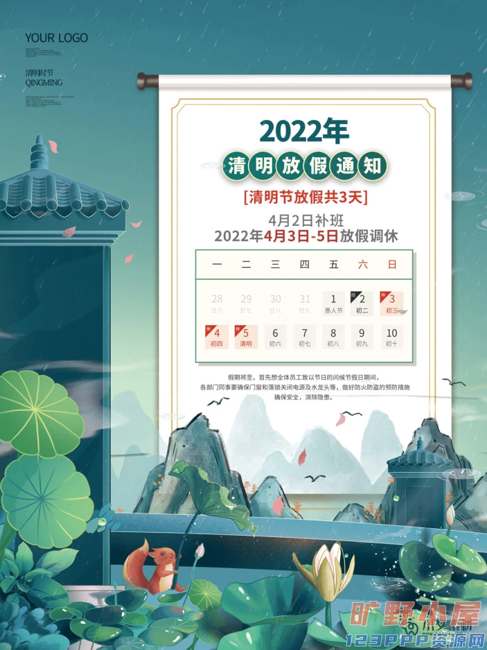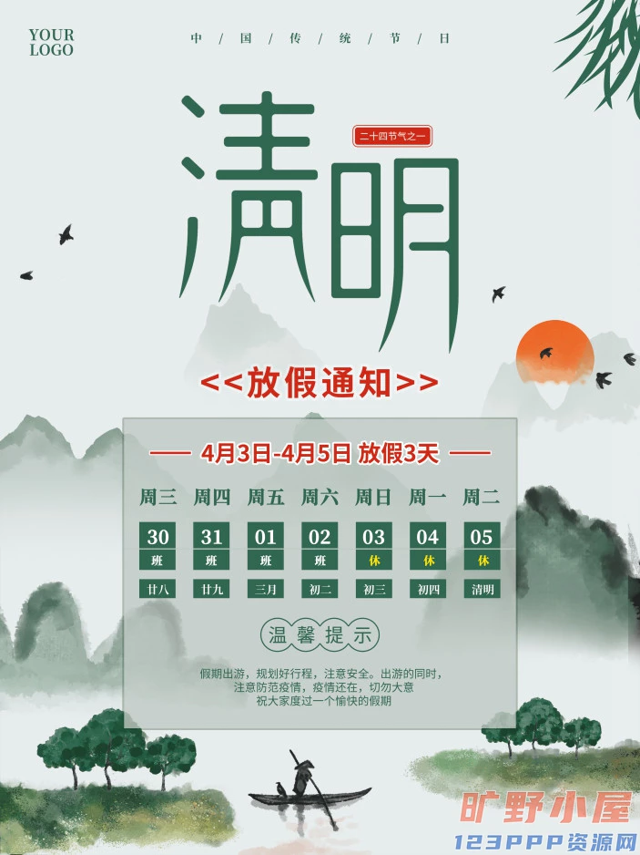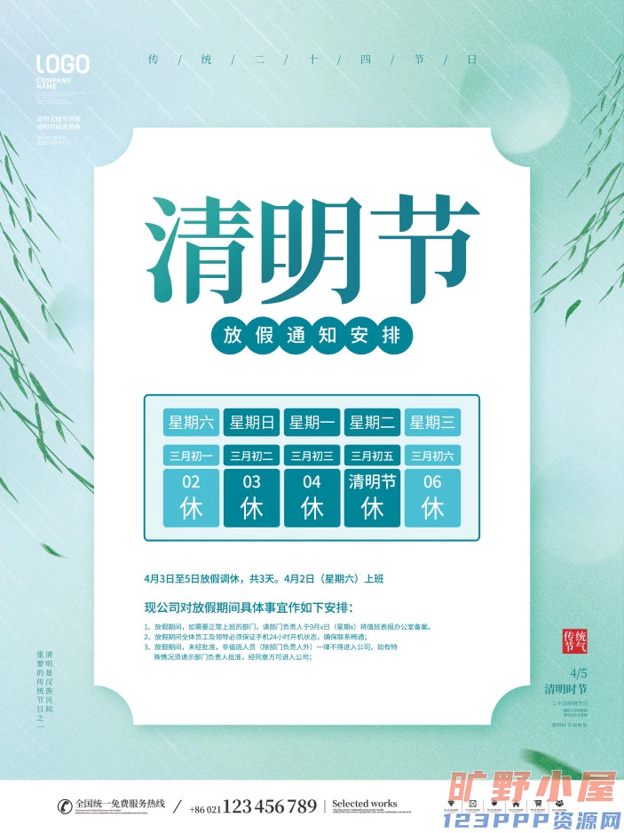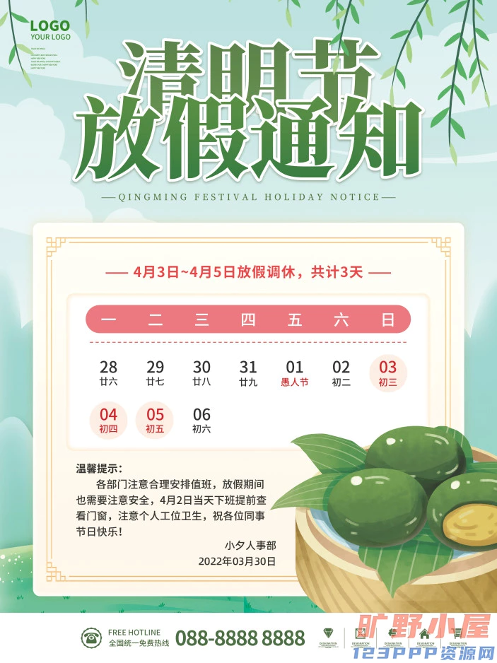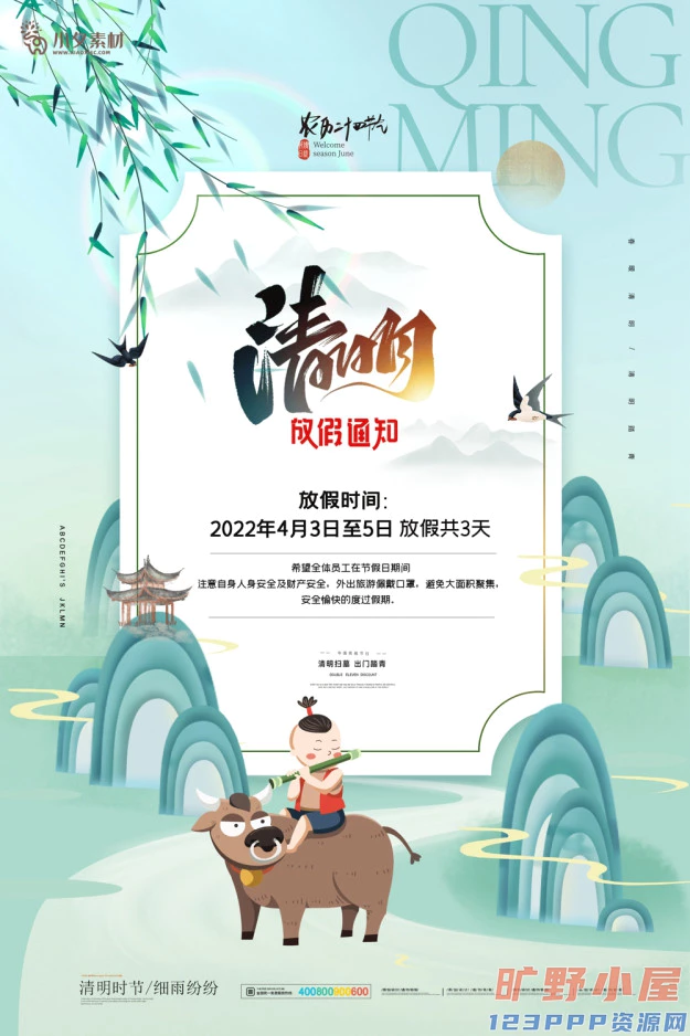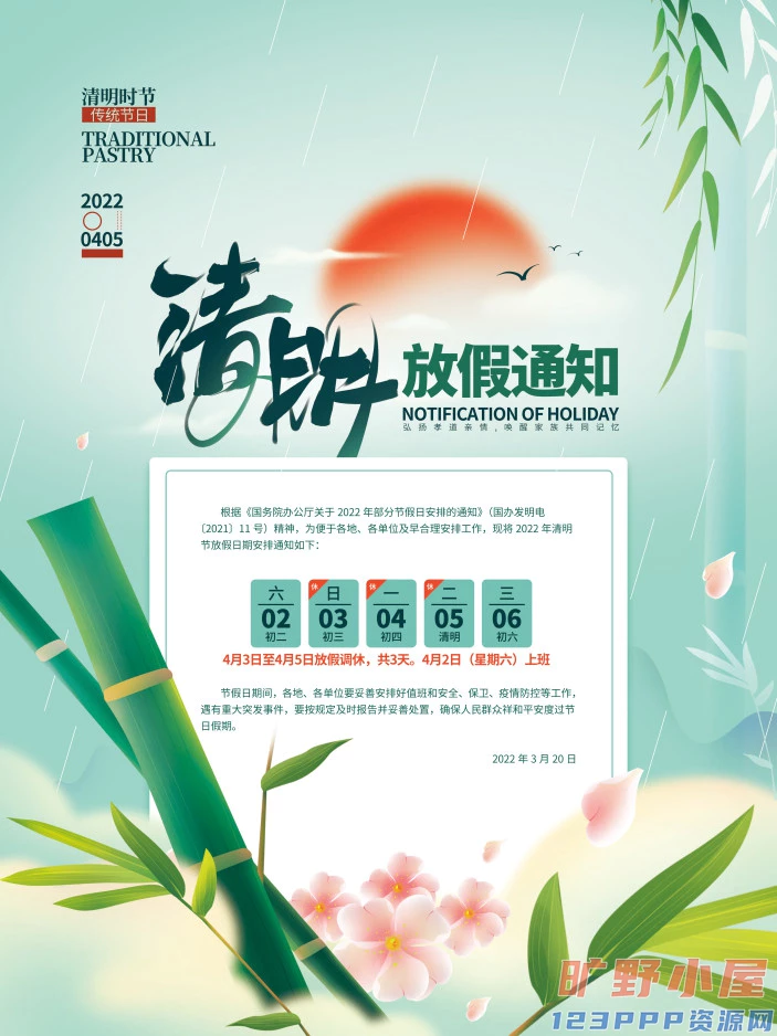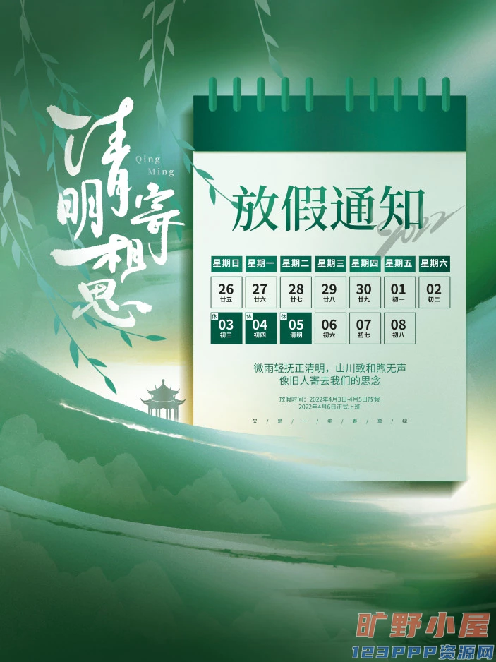 清明节清明放假通知海报模板PSD分层设计素材