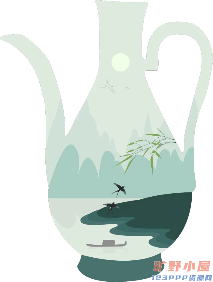 手绘中式清明节青团山水人物春天绿色元素插画PNG免扣PS设计素材