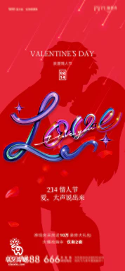 214浪漫情人节情侣节日宣传促销手机海报H5长图PSD设计素材模板