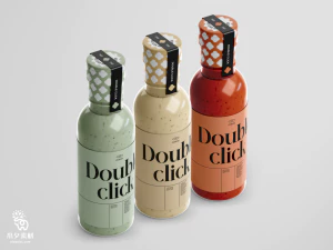 酱油沙拉酱酱料调料瓶玻璃瓶包装VI智能贴图样机PSD设计素材模板 本资源包含3个PSD文件