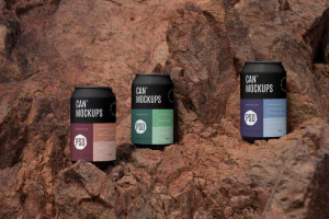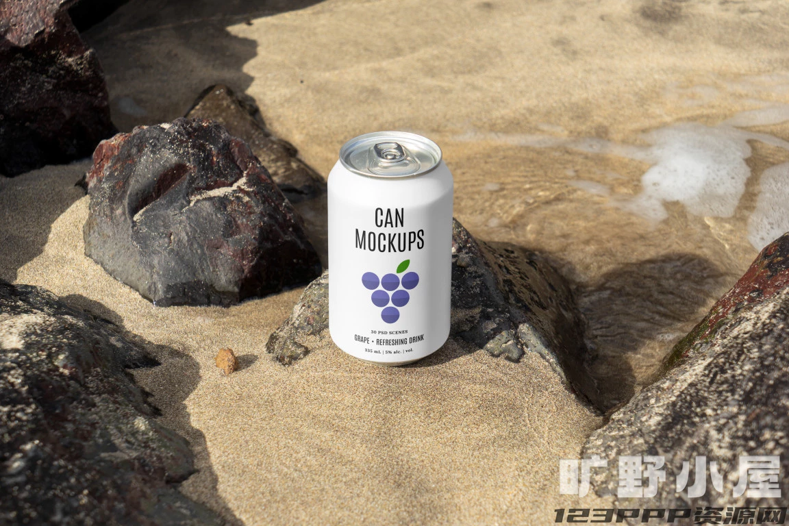 30款听装啤酒饮料可乐易拉罐VI包装设计效果展示样机贴图PSD素材