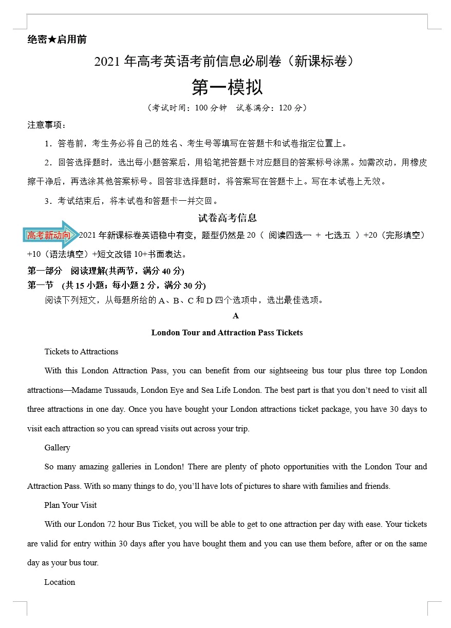 2021年高考英语考前信息必刷卷(新课标卷)(原卷版+解析版 共5套)(doc格式下载)【A01770】