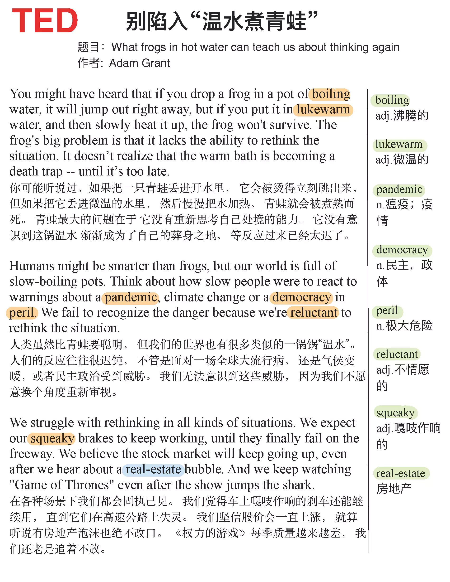相关链接:TED精选演讲稿:英语阅读100篇可打印高清PDF电子版配套双语视频 下载PDF电子版和配套双语视频 从小站云盘下载 从小站云盘下载 按编号查找下载 从百度网盘下载