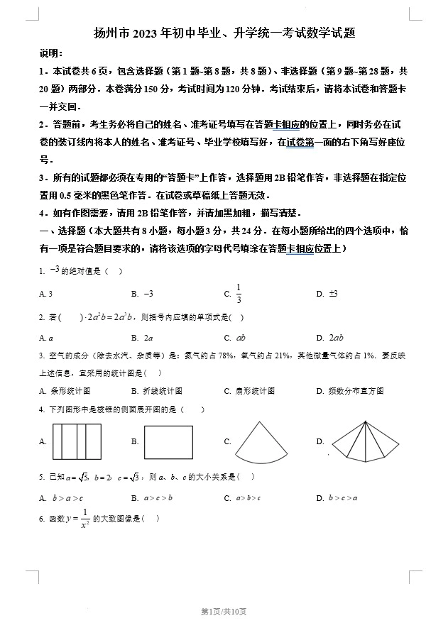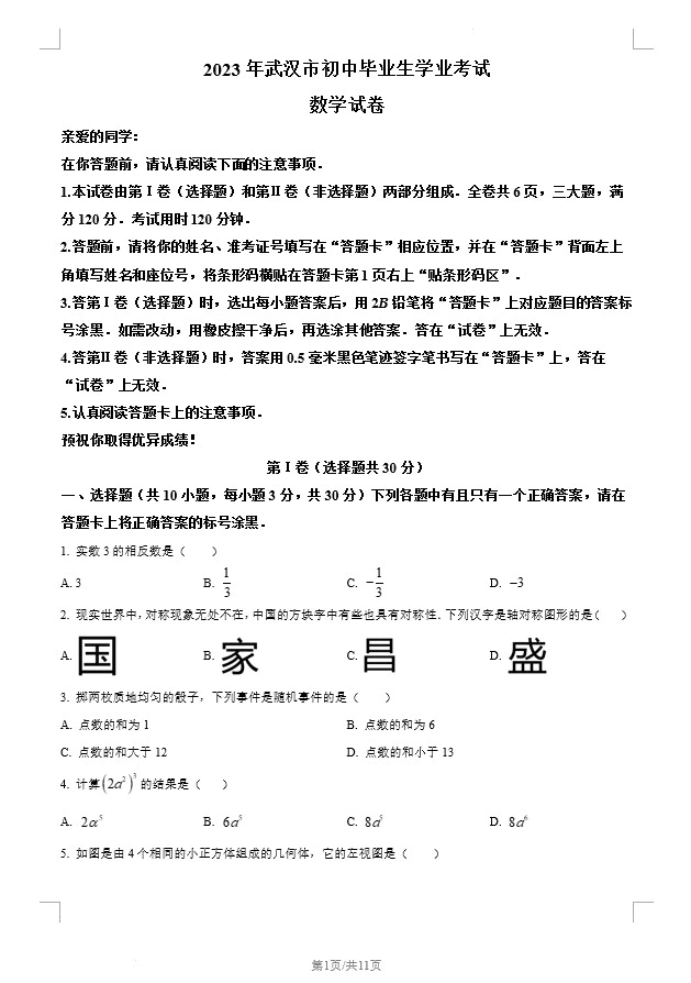 2023年湖南省怀化市中考数学真题(含答案)(doc格式下载)【A01384】